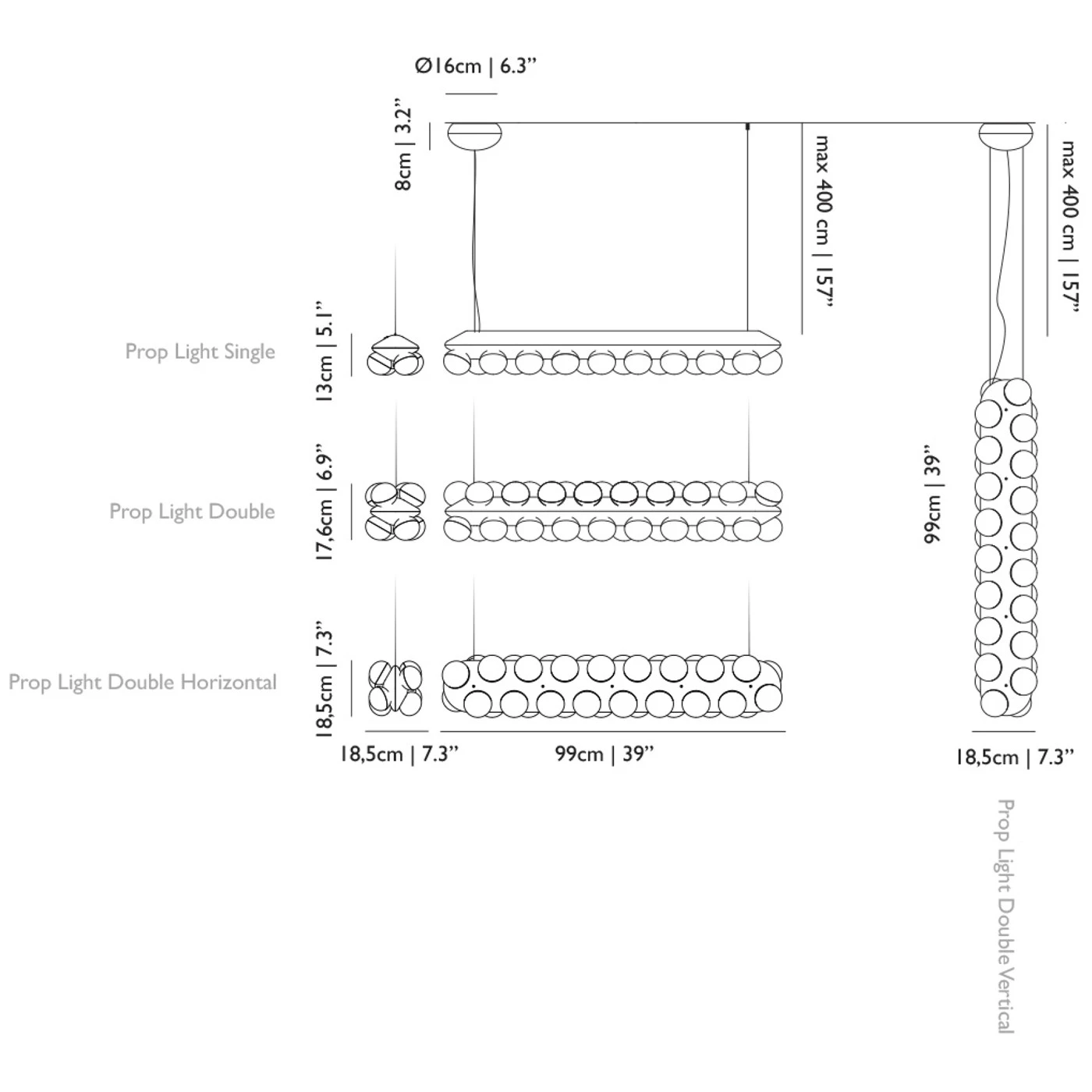 | Abmessungen | Single: Länge 98 cm, Breite 13 cm, Höhe 18 cm, Kabellänge max. 400 cm, Baldachindurchmesser 17 cm.Double/Double Horizontal: Länge 98 cm, Breite 18 cm, Höhe 18 cm, Kabellänge max. 400 cm, Baldachindurchmesser 17 cm.Double Vertical: Höhe 98 cm, Breite 18 cm, Tiefe 18 cm, Kabellänge max. 400 cm, Baldachindurchmesser 17 cm. |